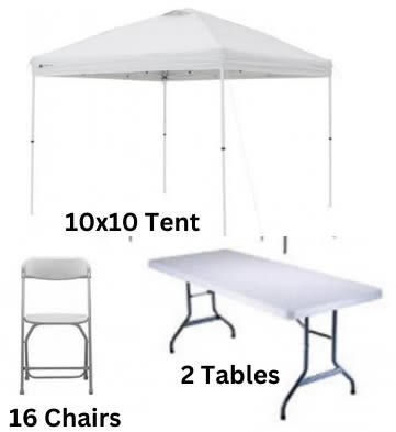 Our 16 Person Tent Package is the perfect set-up for backyard parties, or any party. It's seats 16 people comfortably, and we set it up and take it down!